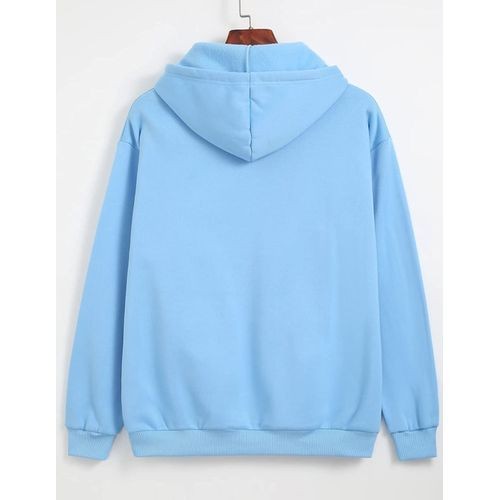 Sweat à Capuche de couleur Bleu Ciel à manches longues avec une pochette Kangourou en avant. Finitions côtelées flashy et pastelles.