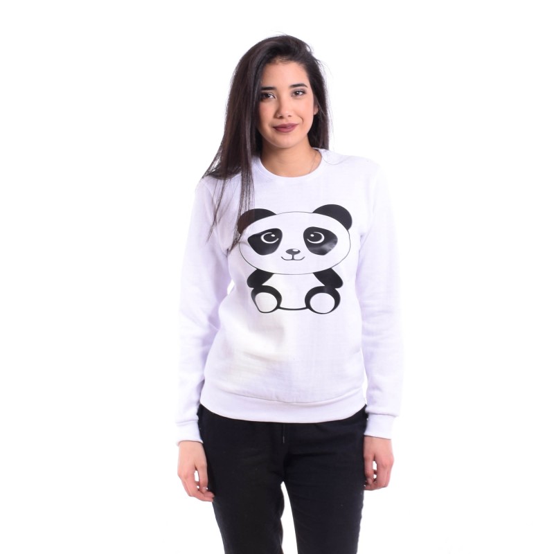 • Sweat-shirt de  couleur Blanc à manches longues avec un imprimés Noir Panda  en avant . Finitions côtelées flashy et pastelles.