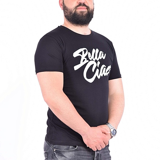 Ce T-Shirt possède un imprimé sur l'avant (Bella Ciao) peut-être porté tout seul ou sous une chemise ouverte.