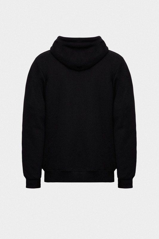 Sweat à Capuche de couleur Noir à manches longues avec une pochette en avant, possède une impression devant (NASA de couleur Rouge). Finitions côtelées flashy et pastelles.