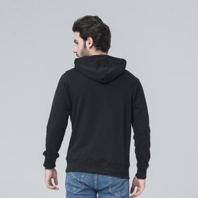 Sweat à Capuche de couleur Noir à manches longues avec une pochette Kangourou en avant. Finitions côtelées flashy et pastelles.