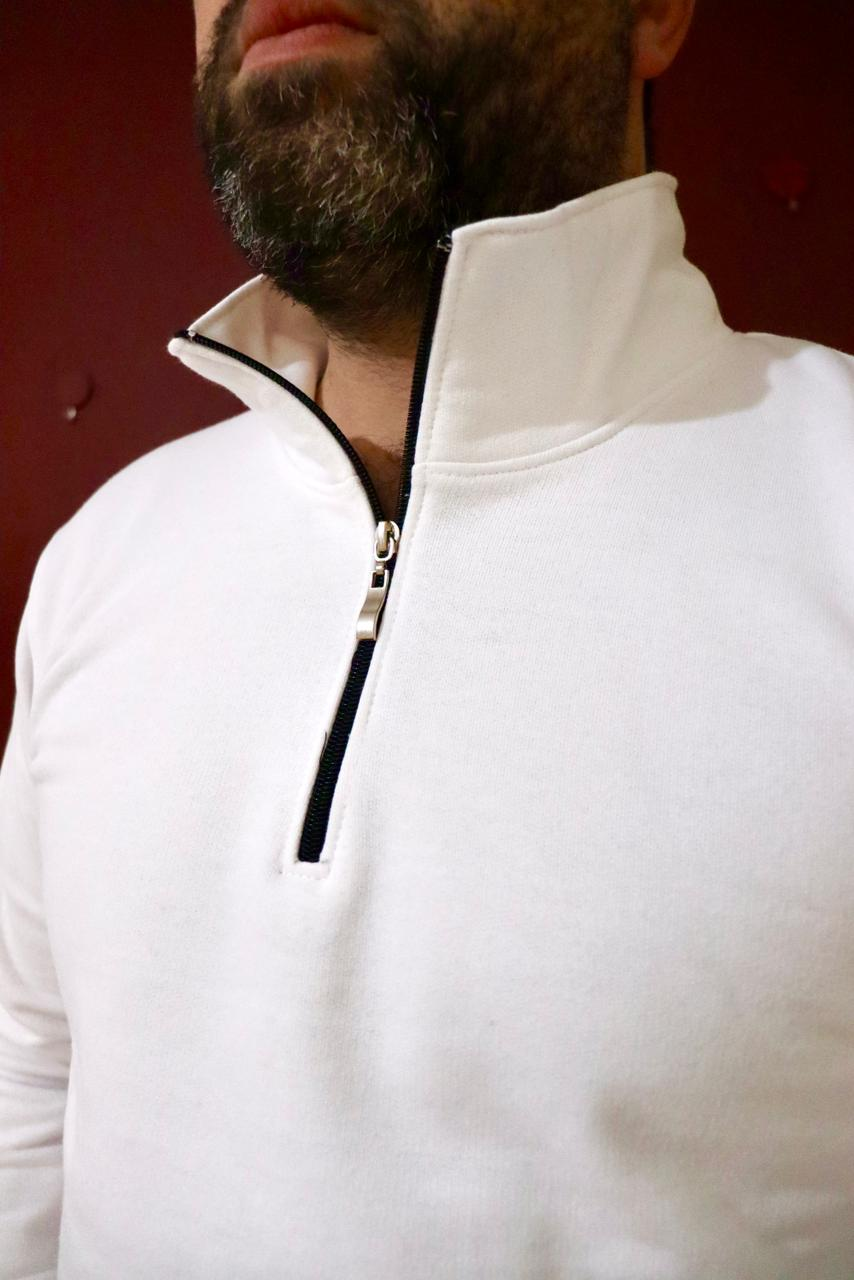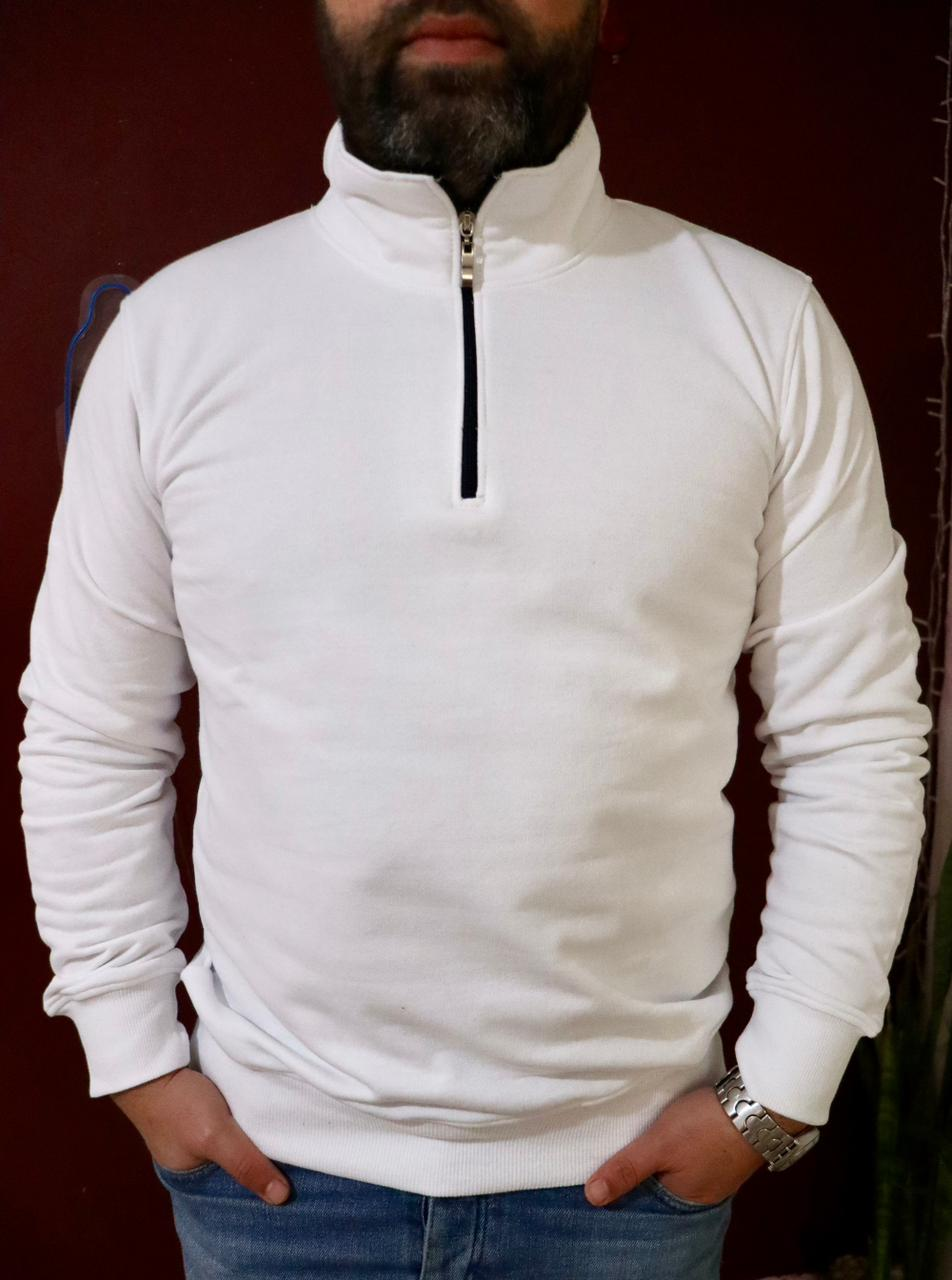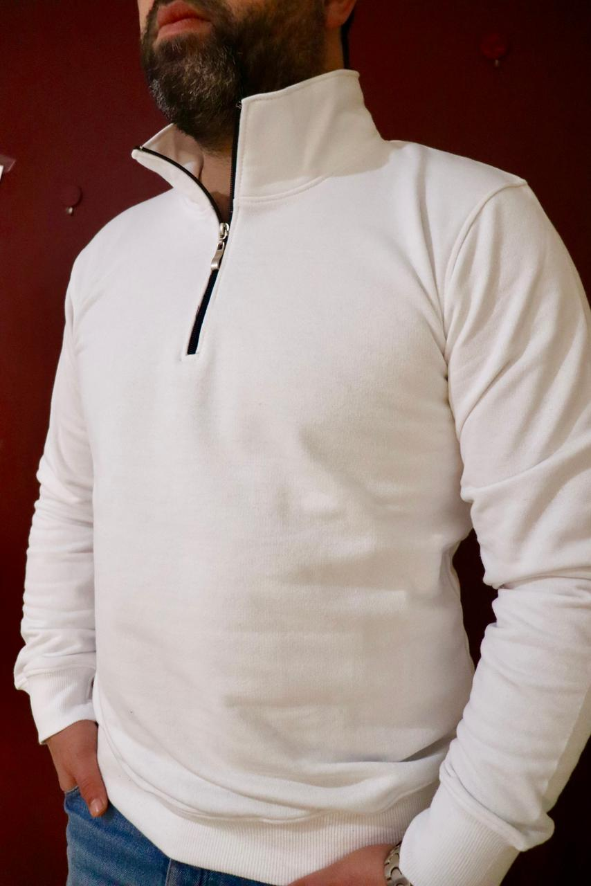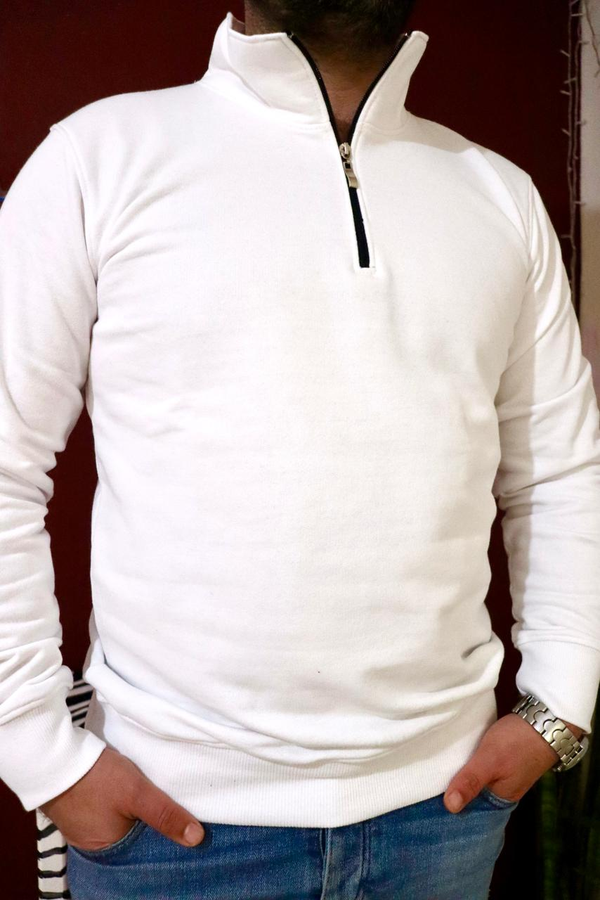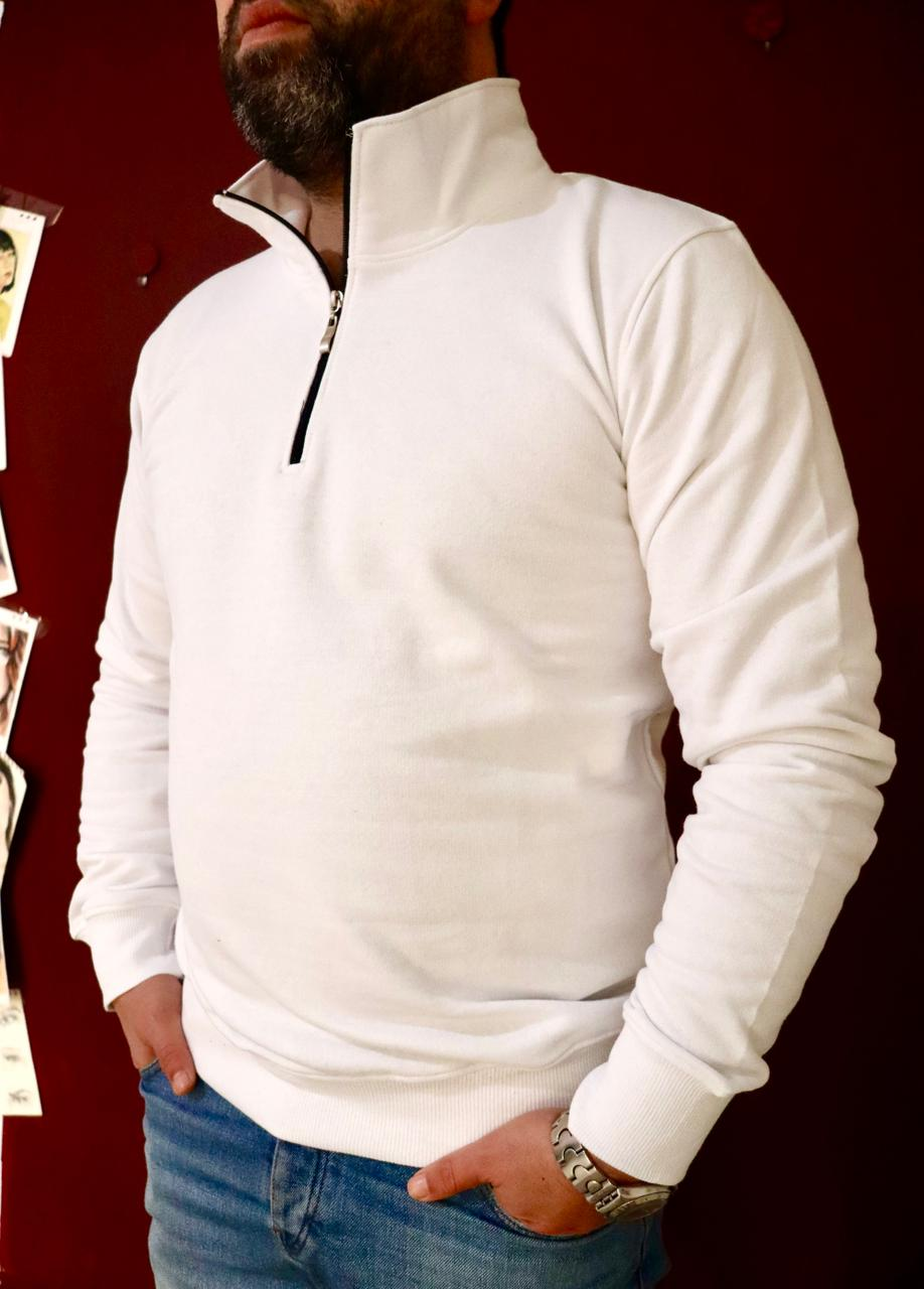 Sweat-shirt ZIP UP à manche long avec une coupe classique et un col cheminée avec fermeture zippée sur le devant, straight de couleur Blanc 100% coton ajustés et confortables pour tous les jours et les soirées car il peut être associé à un jogging, un Jean, un chino... Comme il vous plaira.