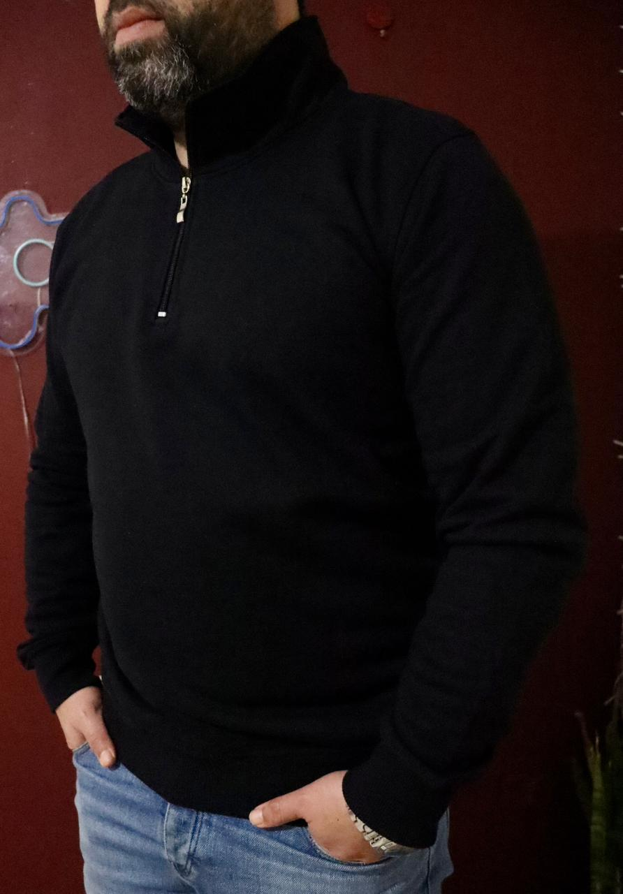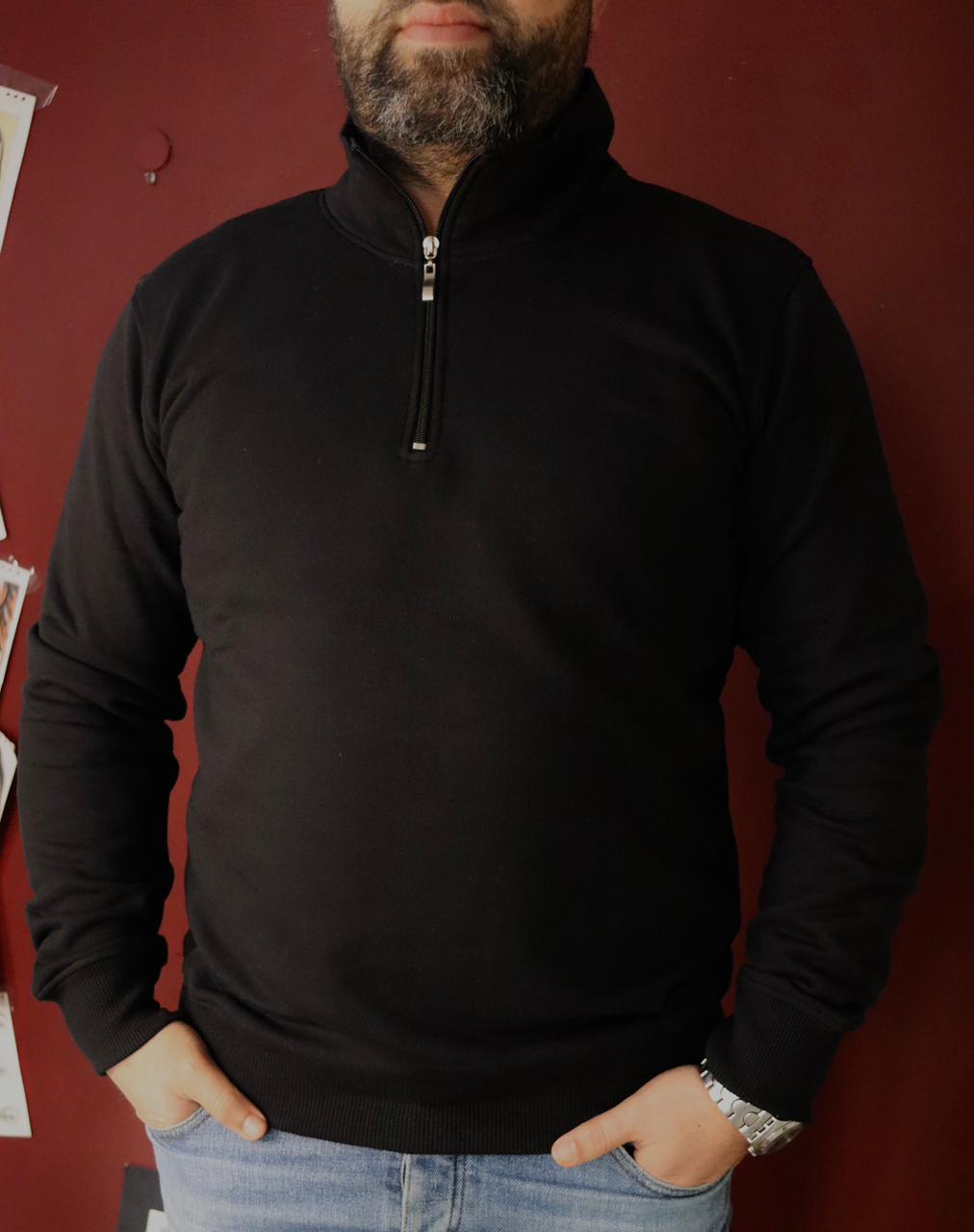 Sweat-shirt ZIP UP à manche long avec une coupe classique et un col cheminée avec fermeture zippée sur le devant, straight de couleur Noir 100% coton ajustés et confortables pour tous les jours et les soirées car il peut être associé à un jogging, un Jean, un chino... Comme il vous plaira.